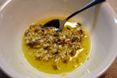 ・ 小さなボウルにケッパーベリー、ニンニク、オリーブオイル、レモン汁を合わせます。