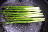 ・ アスパラは硬い部分を切り、歯ごたえが残るように茹でます。