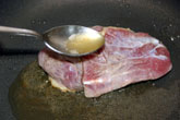 鴨を皮を下にして入れ、出てきた油をかけながら焼きます。