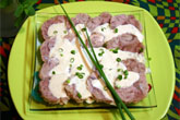 ・上にたっぷりとソースをかけて、ディルを散らして出来上がり!!