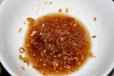 ・小さなボウルに干しエビ、酒、ぬるま湯を入れ、戻しておきます。柔らかくなったら粗くみじん切りにします。