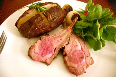 ・肉を解凍し、ハーブ・ド・プロヴァンスを揉みこみます。エクストラヴァージン・オリーブオイルを振りかけ、最低でも2時間マリネします。(時間があったら1晩マリネしてください)