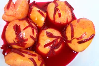 もし一晩マリネする時間がなかったら、1時間マリネしたサンブーカとビーツのソースを小さな鍋に入れて半分まで煮詰めて冷やしてもう一度桃に絡めると良いでしょう。