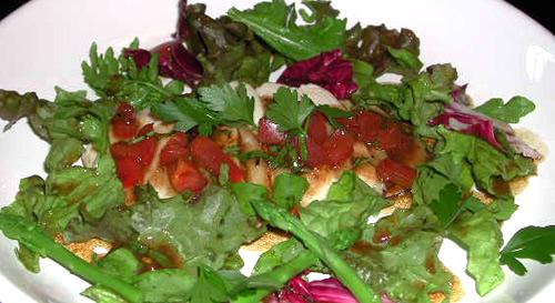 マリネして焼いたチキンはとっても柔らかくてジューシー ドレッシングのバルサミコとトマトの相性も絶妙!