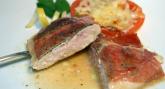 かりっと香ばしい皮と生ハムが、レモンの利いたソースと良いバランスです。 |